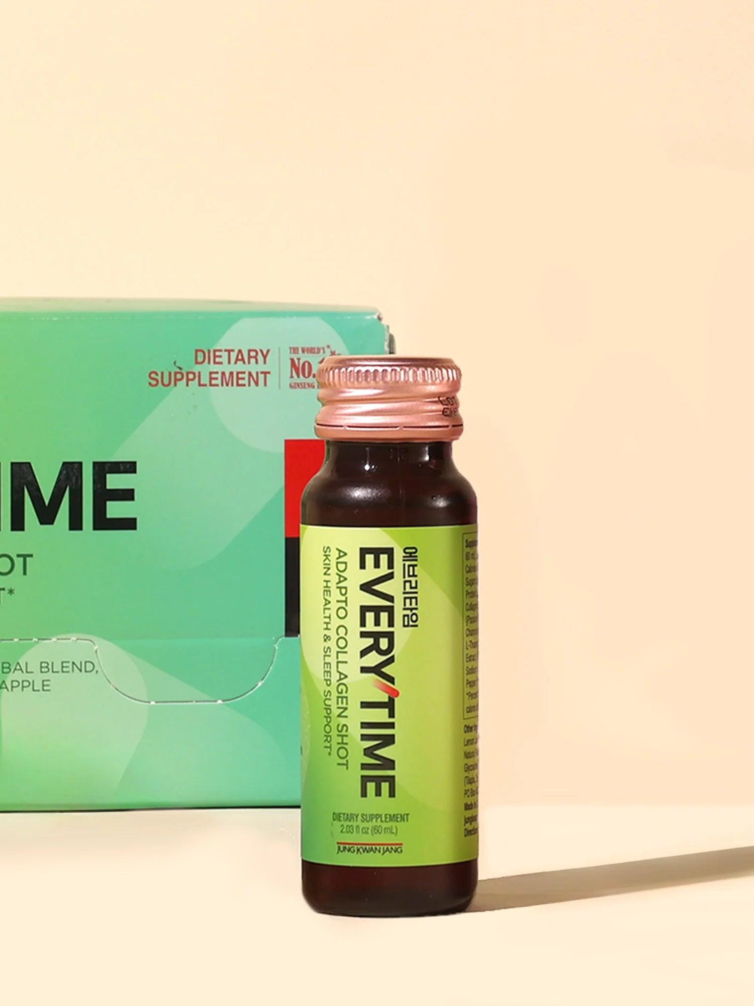 Enjoy restful nights and awaken your skin’s natural radiance with Everytime Adapto Collagen: Skin Health & Sleep Support! This is a gluten-free, GMO-free, and caffeine-free supplement designed to support the skin barrier, boost collagen density, enhance skin brightness and reduce wrinkle appearance & skin elasticity all while promoting deep, rejuvenating sleep. Feel revitalized with a blend of American Ginseng & Marine Collagen.
