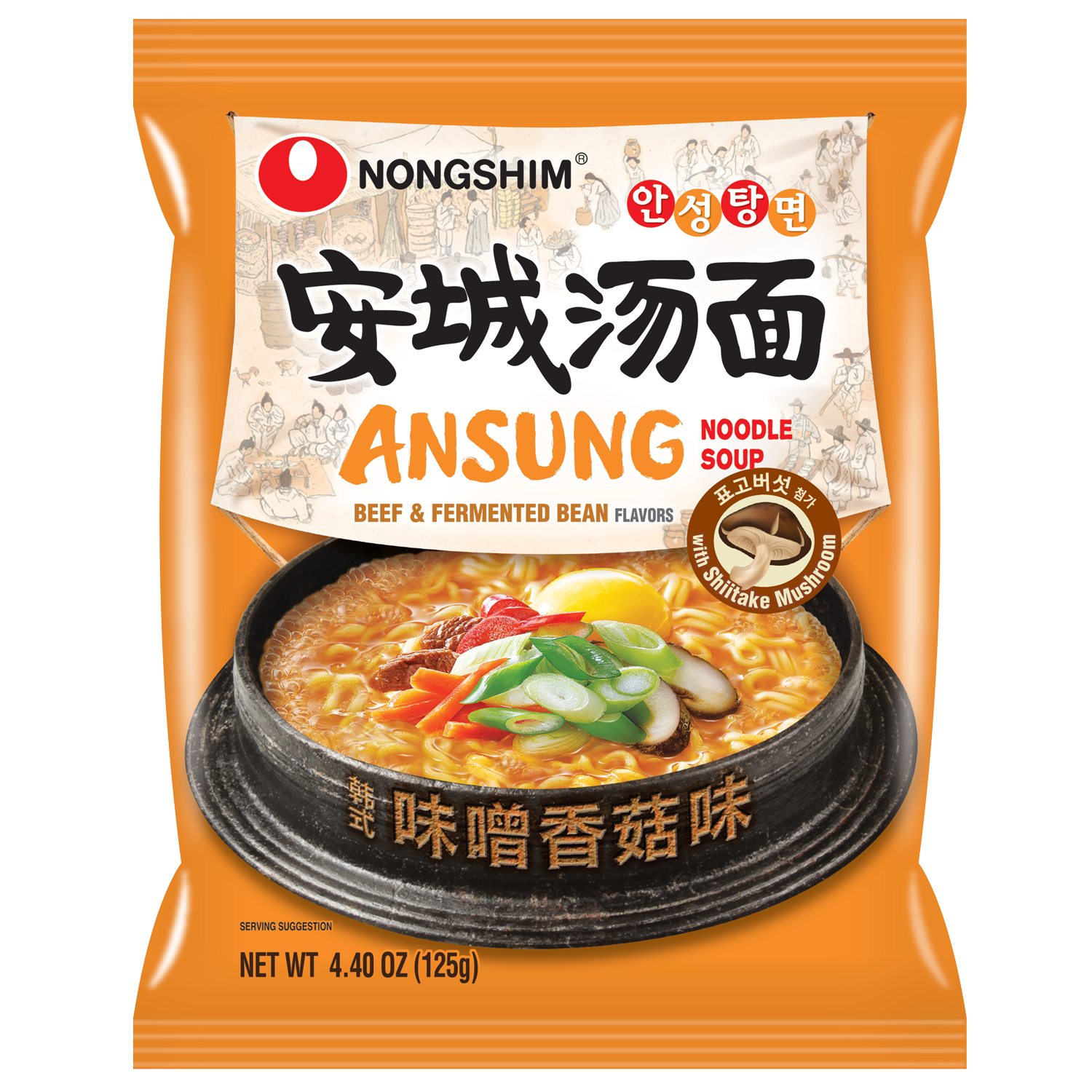 Nongshim Ansungtangmyun is a classic Korean favorite with a mild, soy-based broth and a clean, traditional flavor that soothes and satisfies.