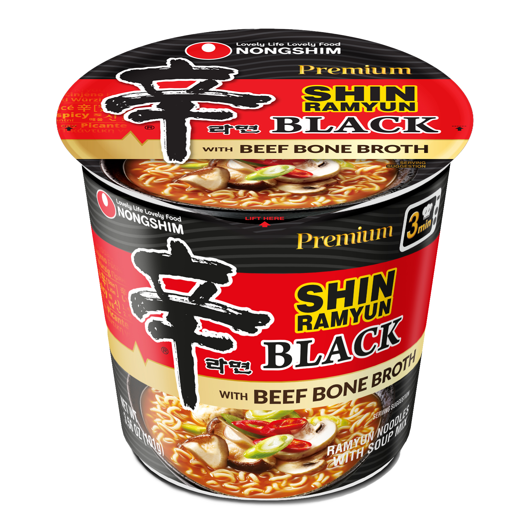Experience the rich, bold flavor of Nongshim Shin Black in a quick and easy format with this 6-pack of Shin Black Cups. Each cup delivers the creamy, savory beef bone broth and signature Shin spice you love – with the ultimate convenience of a microwavable, travel-friendly cup.