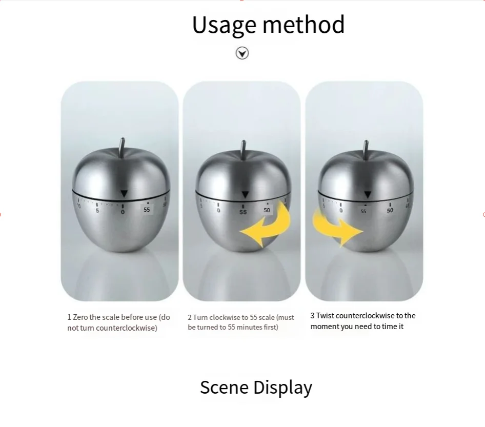 This stylish timer is specially designed for cooking. Also, the kitchen timer is perfect for people who usually forget the cooking time when you are busy for other things or have no time. It can remind you in time with long ring chime. Therefore, the kitchen timer can do for all of your needs as cooking and otherwise. It is not only a lovely timer, but also a home decoration. It adds fashionable atmosphere to your kitchen.